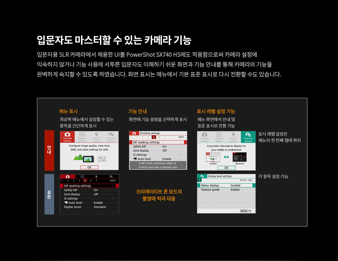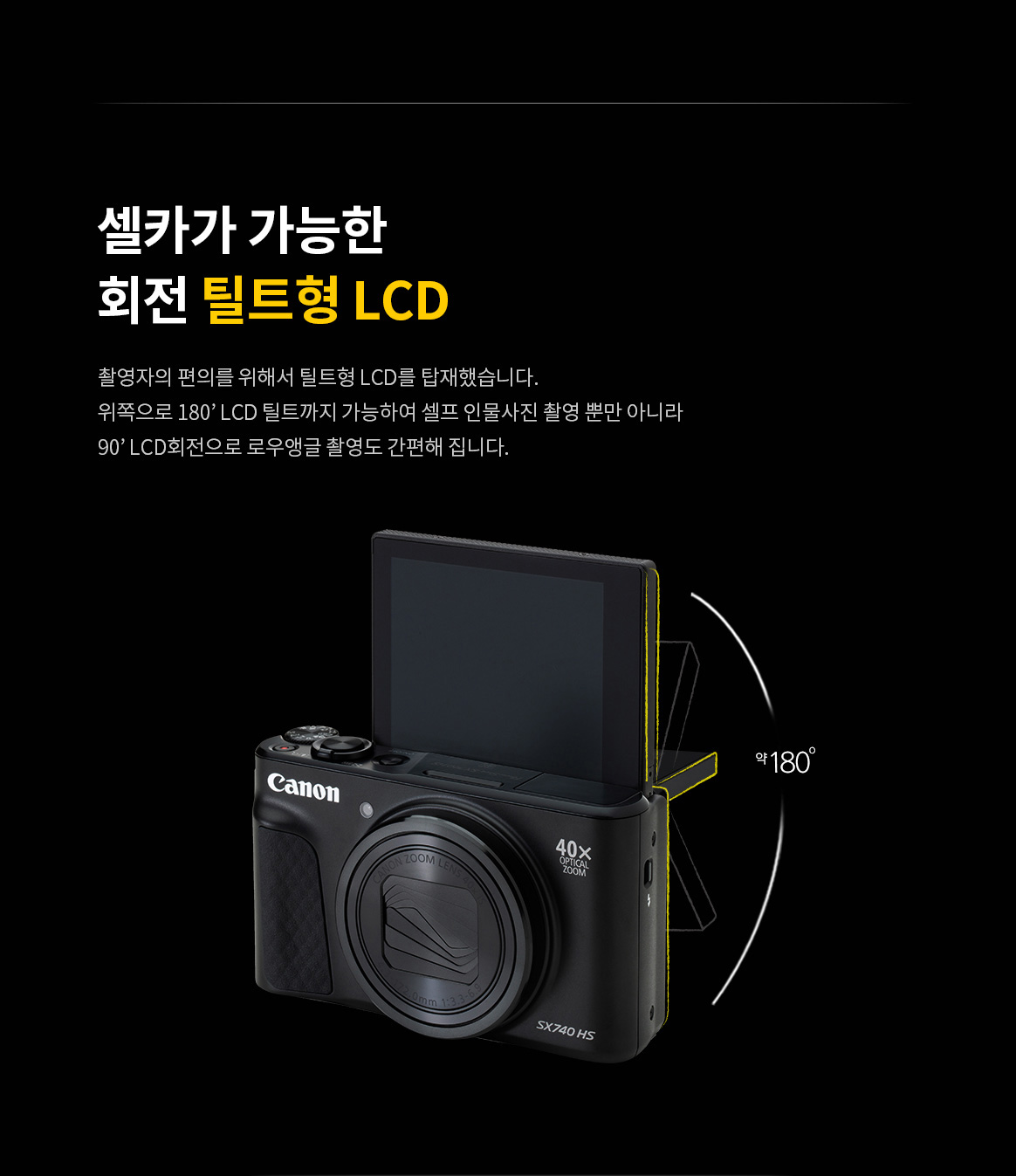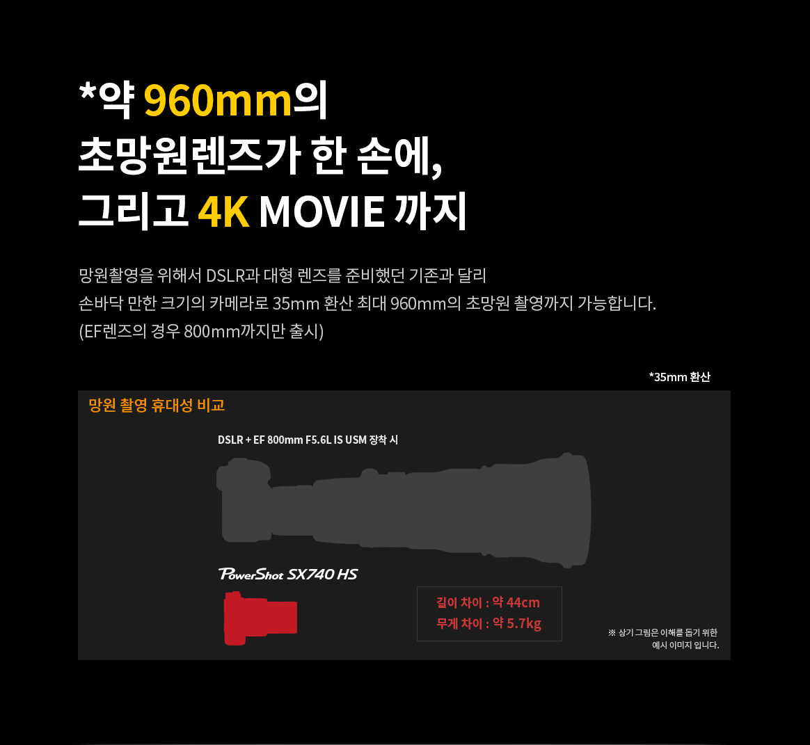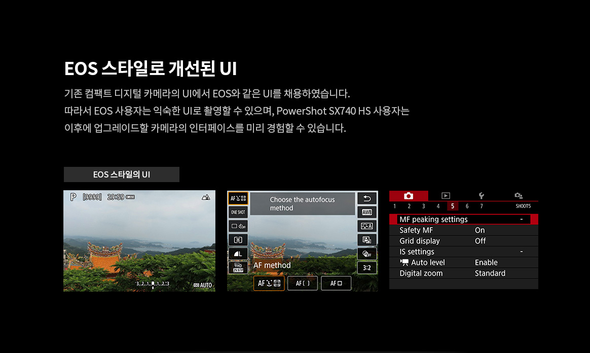| 주요 사양 | DIGIC 8, 광학 약 40배, 디지털 80배, 초당 약 10매의 고속연속촬영, 4K MOVIE, 손떨림방지, 틸트업 LCD, Wi-Fi, NFC, Bluetooth |